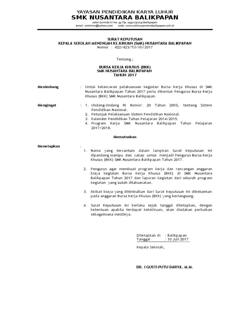 Contoh Sk Pengurus Bkk Smk - Kjkvshtnjntehm / Surat keputusan kepala smkn 3 yogyakarta nomor 800/1058 tanggal 2 juli 2018.